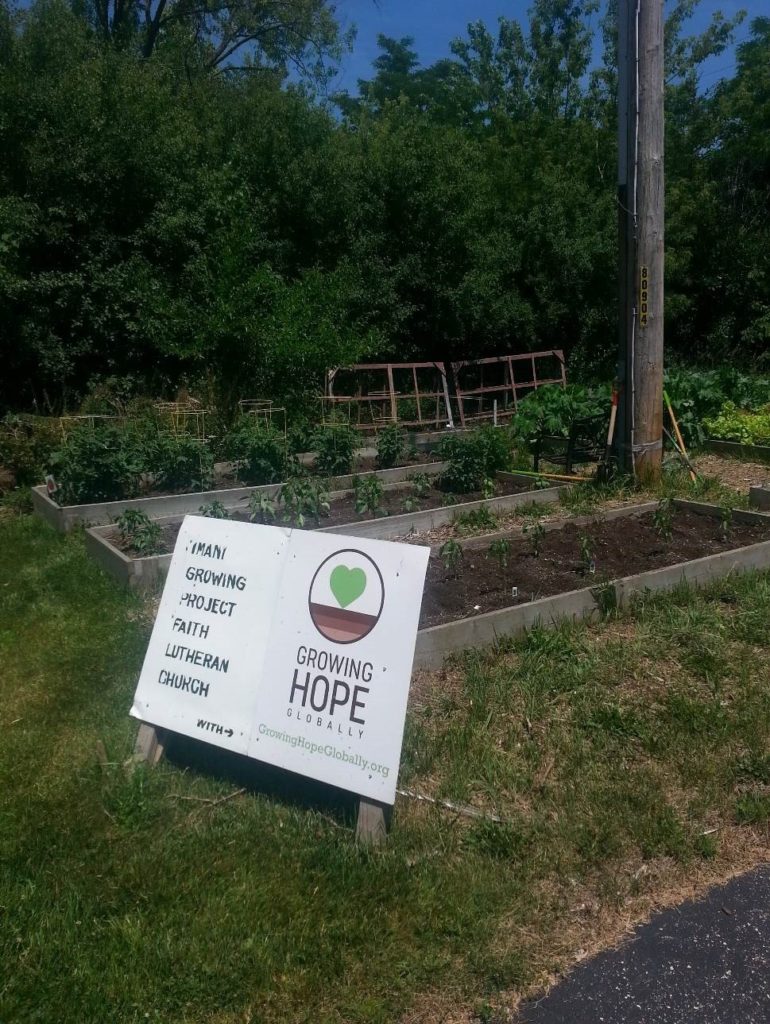 The garden started in 2010. Many Faith volunteers have worked on it and made it successful. In the years when congregation members donated funds to obtain the produce grown, we were able to generate well over $10,000. These were then donated to Foods Resource Bank (now called Growing Hope Globally), a world-wide organization helping people in developing countries. Our donations through them helped to fund projects aimed at helping local farmers learn how to be more productive and produce more food for their communities.