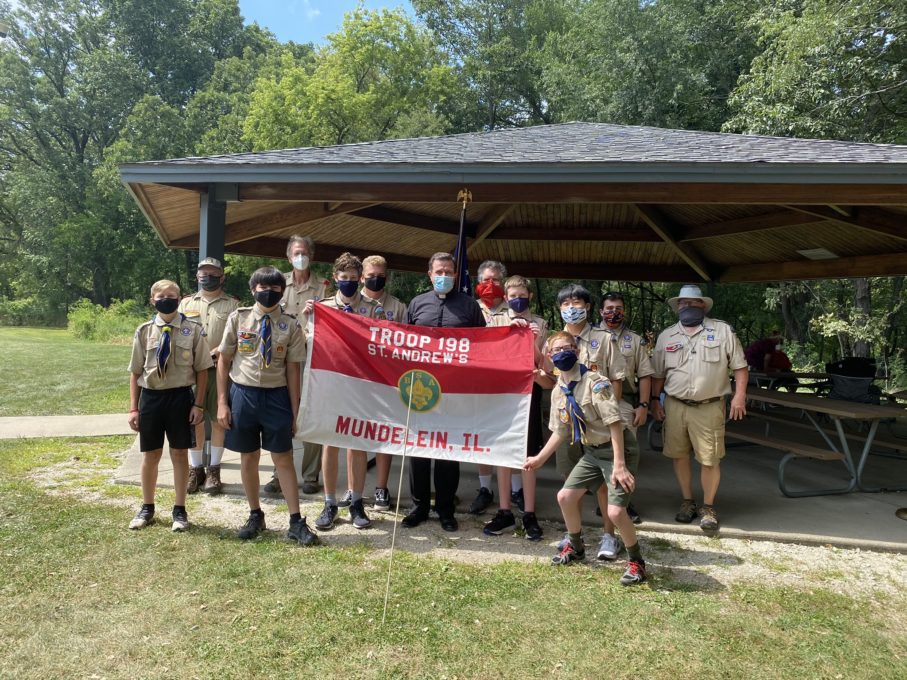 On Sunday, August 23, Pastor Jim met with Scouts and leaders from Troop 198 of Mundelein to return their flag, which he had taken on his mission to the South Pole. The Troop’s flag was flown on an official U.S. Air Force mission from Christchurch, New Zealand to McMurdo Station, Antarctica, aboard the Lockheed C-141 Starlifter. It then journeyed from McMurdo to the South Pole via a Lockheed C-130 Hercules. Thank you Dan Krudop, Mr. Bruecks, Mr. Schlax, and Mr. Fulton for making this possible.