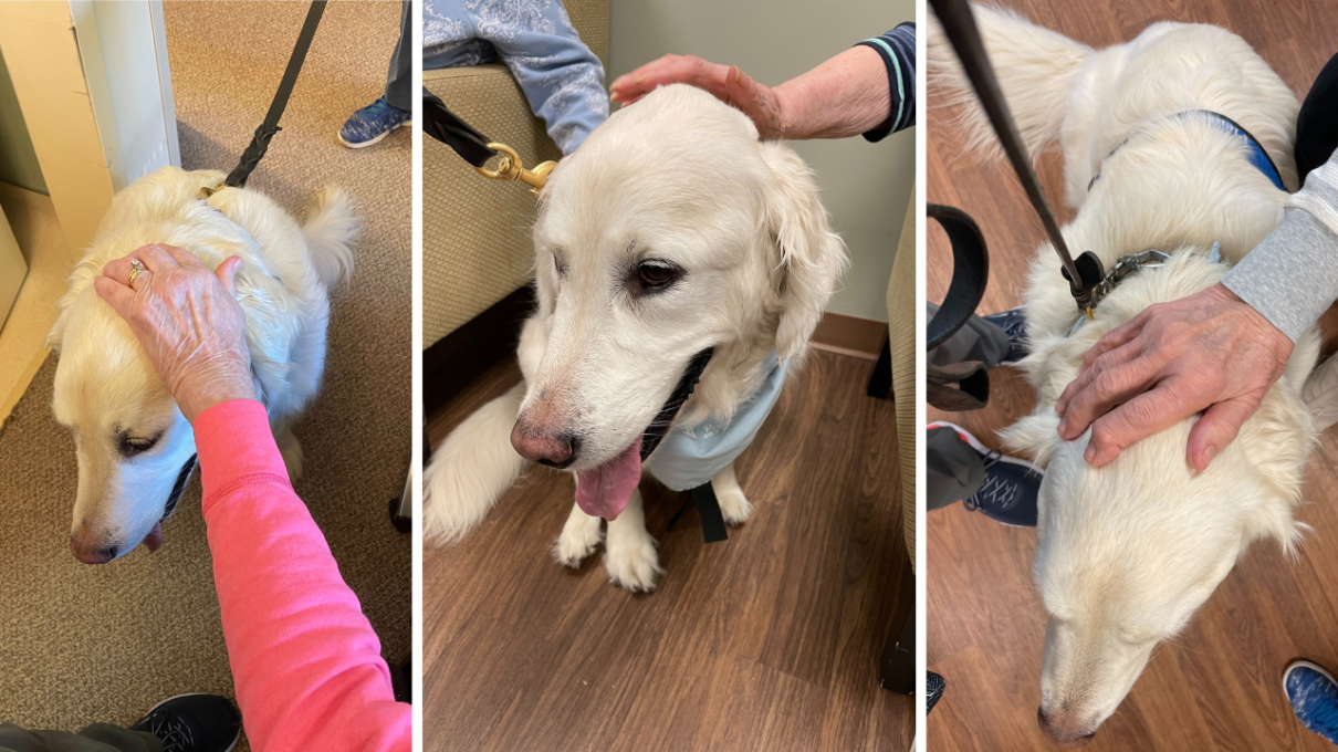 A bit later I took Asher outside for a “quick potty,” and a woman approached Asher and me. She immediately asked, “Is this the infamous Asher…the one who is blowing up my phone?” It turns out that this is the daughter of the woman and son I had visited, on her way to see her mom. The pictures of Asher with her mom were making the family rounds and winding up back to her phone multiple times. The joy Asher brought had just grown exponentially! It was a moment for the family to connect—all made possible by the presence of Asher.