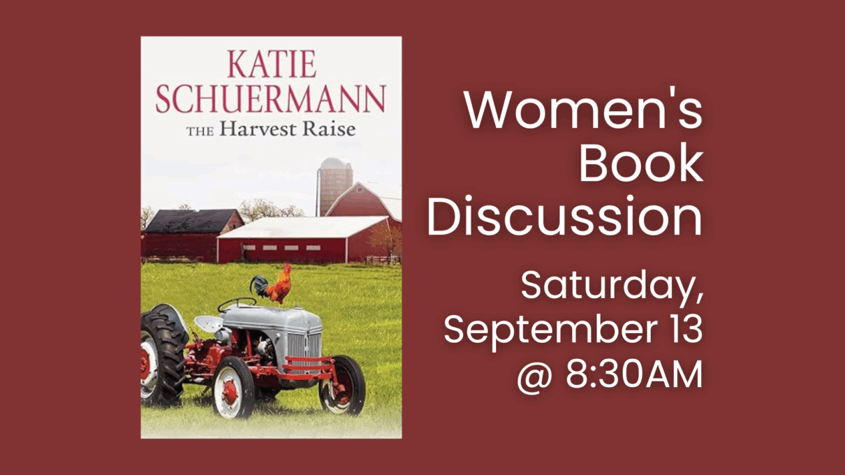 Saturday, September 13 @ 8:30AM | WOMEN’S BOOK DISCUSSION | Women will meet to discuss The Harvest Raise—the third book in the Anthems of Zion series, by Katie Schuermann. ALL WOMEN are welcome to join us for conversation and Christian fellowship.